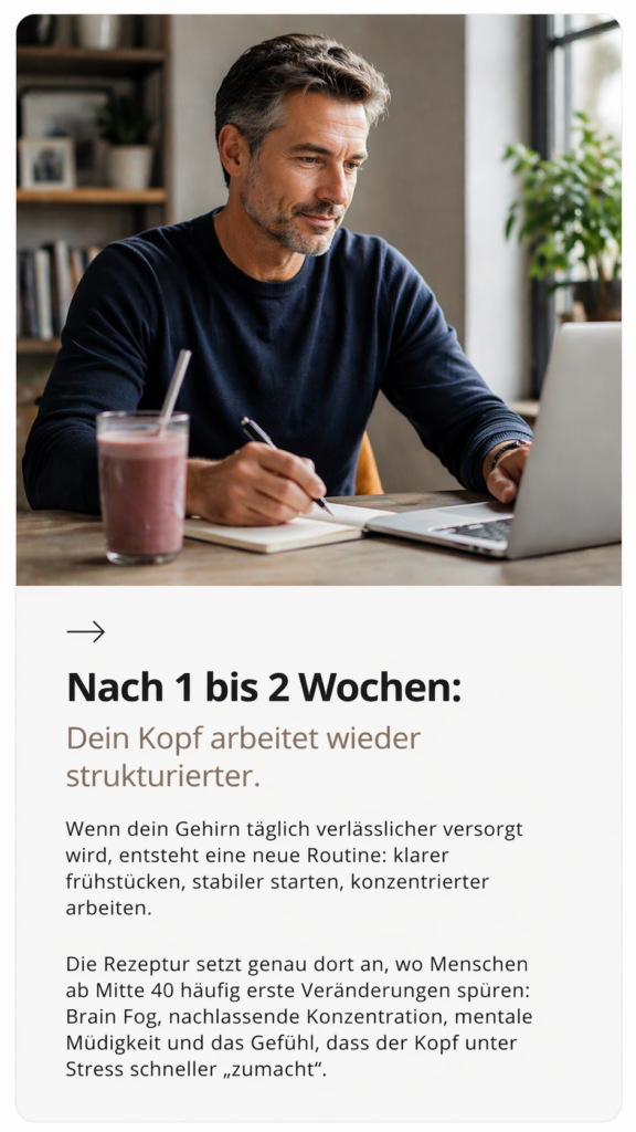 - ✓ Du merkst ab Mitte 40, dass Fokus und mentale Energie nicht mehr selbstverständlich sind.