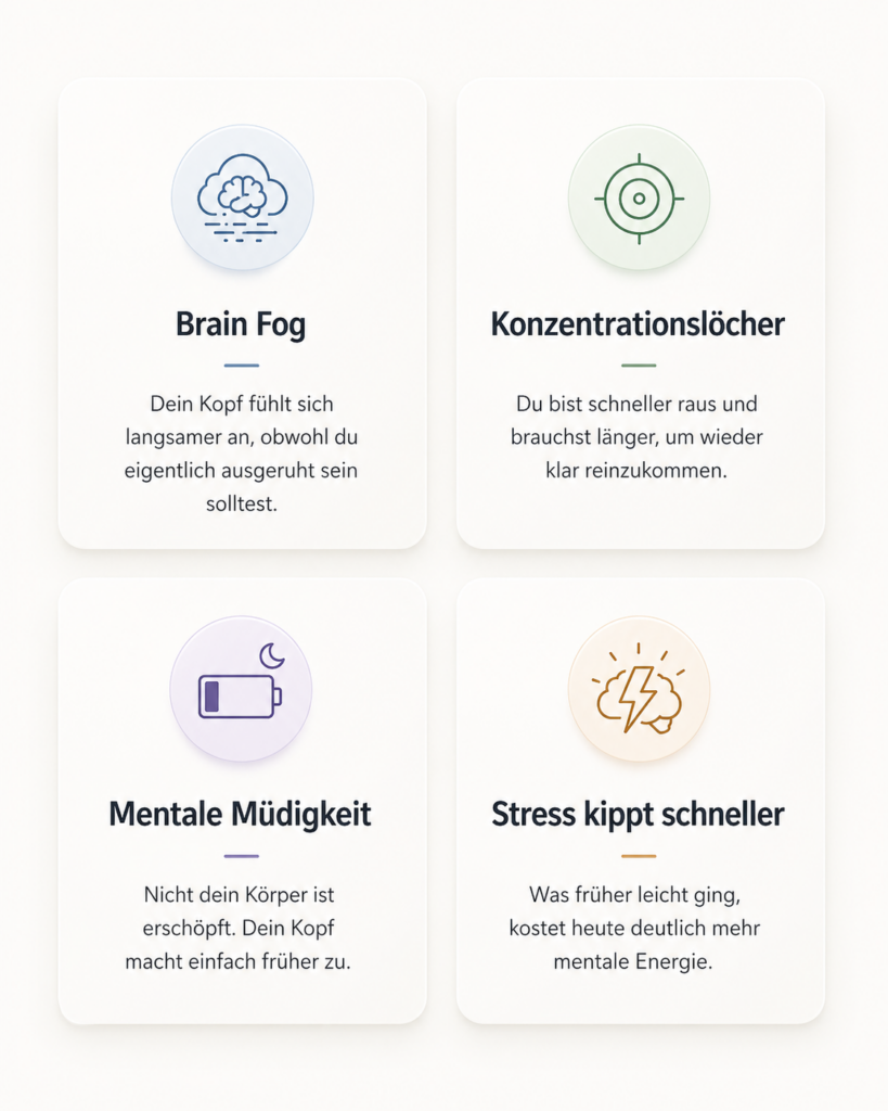 - ✓ Du nimmst Brain Fog, Konzentrationsprobleme oder mentale Müdigkeit ernst.